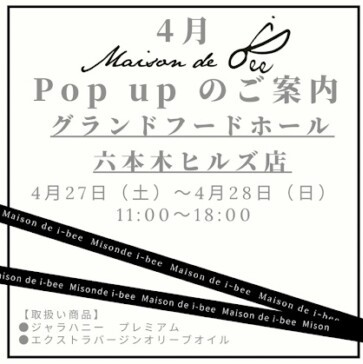 Maison de i-bee が4/28(土)29(日)にグランフードホール六本木ヒルズ店にてPop Up販売を行います。(11時から18時まで)
